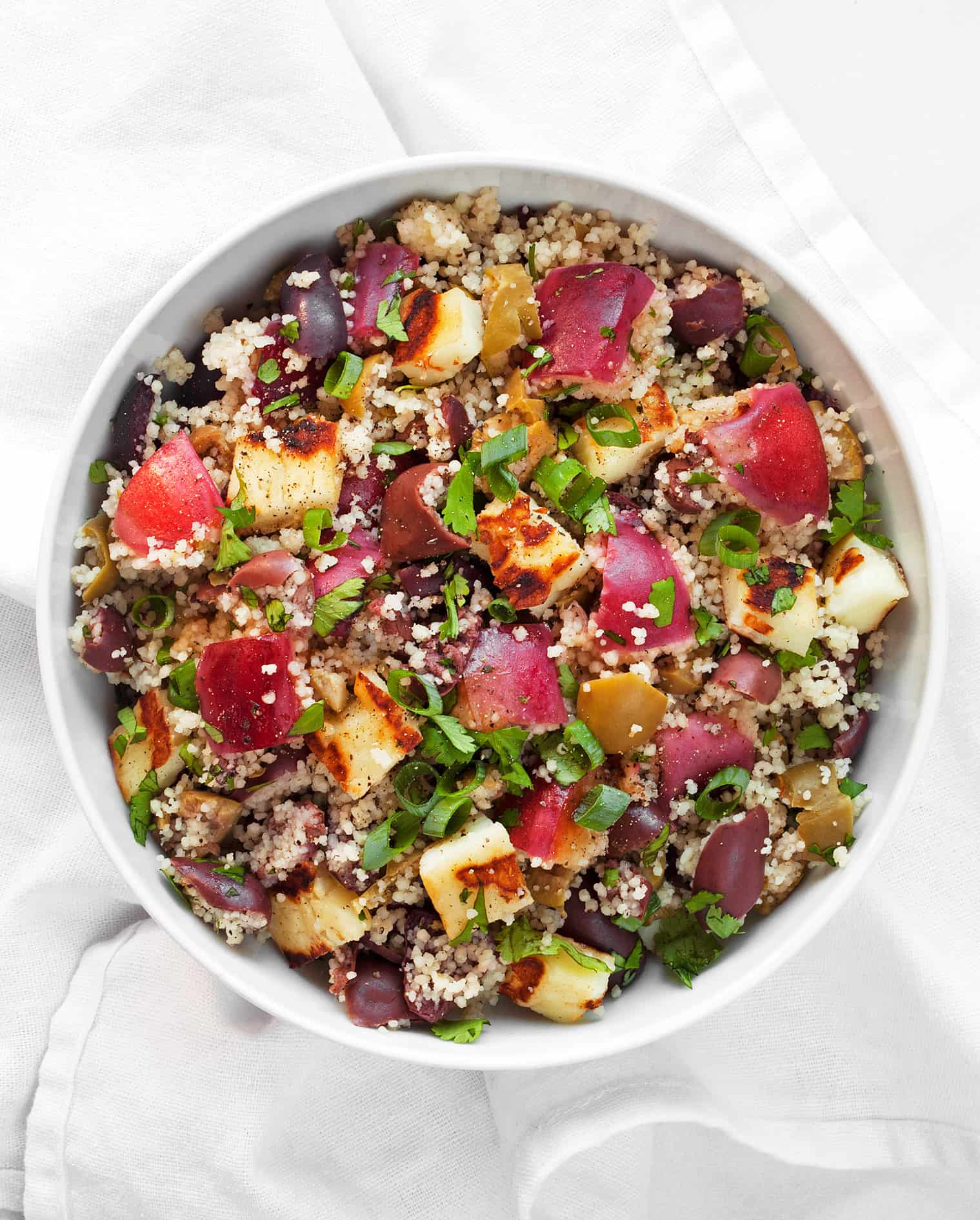 How To Cook Halloumi With Couscous : Couscous-Halloumi Salad : These tiny semolina granules absorb hot water and quickly transform into light and tender product.. Divide between 4 plates and top with halloumi and a little get ahead cook the couscous and courgettes up to a day in advance and leave in the fridge. Halloumi should be cooked just prior to serving it and eaten. Set the halloumi aside and make the salad base by tossing cooked pearl couscous with. Master how to cook halloumi cheese. Spray the griddle pan again with oil and lay the halloumi slices in the pan.