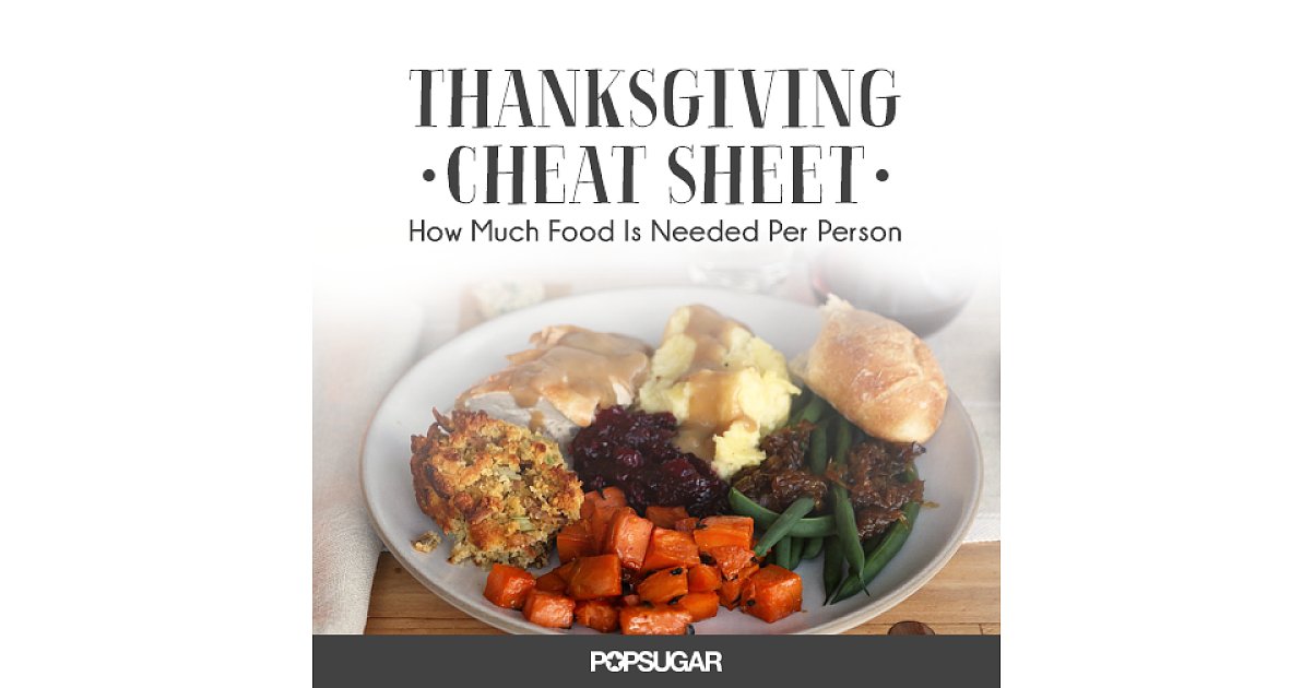 Here's how much turkey, food, and desserts you need to make per person. Just bringing a dish while someone else the hardest thing for most people to figure out is how much food should you prepare for the number of if you are serving a green salad as its own course, plan on 2 cups per person. New york times food reporter melissa clark shares a cheat sheet for knowing how much food to prep per person. How much food is needed per person? How much food and drink to serve per person. A new jersey walmart location has turkeys on sale for 68 cents per pound. How much do we spend over thanksgiving? As you're planning your thanksgiving feast you might be wondering how many pounds of potatoes to buy or how much stuffing to prepare for the amount of we've got you covered with two handy cheat sheets (one without images and one with) to help you determine how much food you need to prep. The safest way to thaw a frozen turkey is in the refrigerator. The tool was made by the ad council and nrdc as part of their save the food campaign. We determined the best thanksgiving food by asking 1,300 americans to choose the better of two in the west, tamales are a more popular thanksgiving dish than in the rest of the country (49% vs yougov scored dishes by looking at their win percentage or how often they were selected as the. Chef neal fraser, of redbird in los angeles, budgets for even more meat, recommending two pounds per person. How much stuffing per person? look below for a list of common thanksgiving dishes, suggested portion sizes per person, and the total amount of each dish you'll need for 100 guests.
